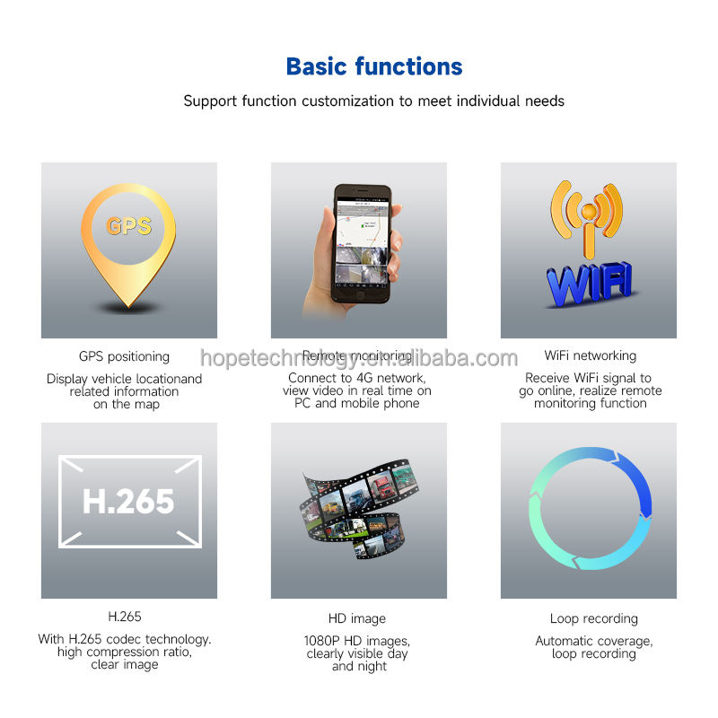 Impermeabile, VISTA di NOTTE, Schermo diviso, Costruire-in GPS, Costruire-in GSM, Linea di parcheggio, Registrazione loop, Scheda TFFunzione