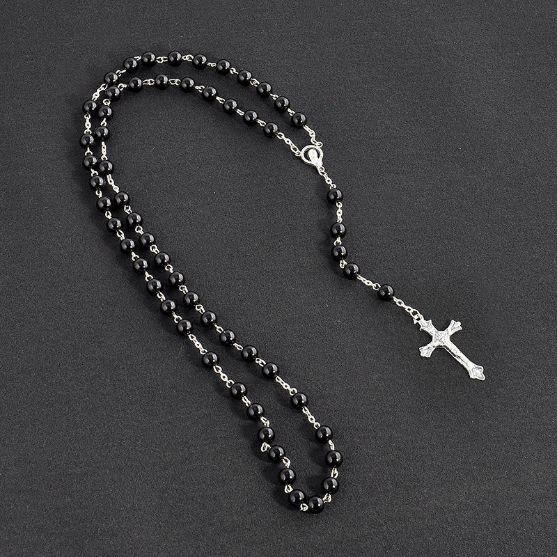 Parola chiave:Collana viola, collana di perline del rosario, collana a forma di croce