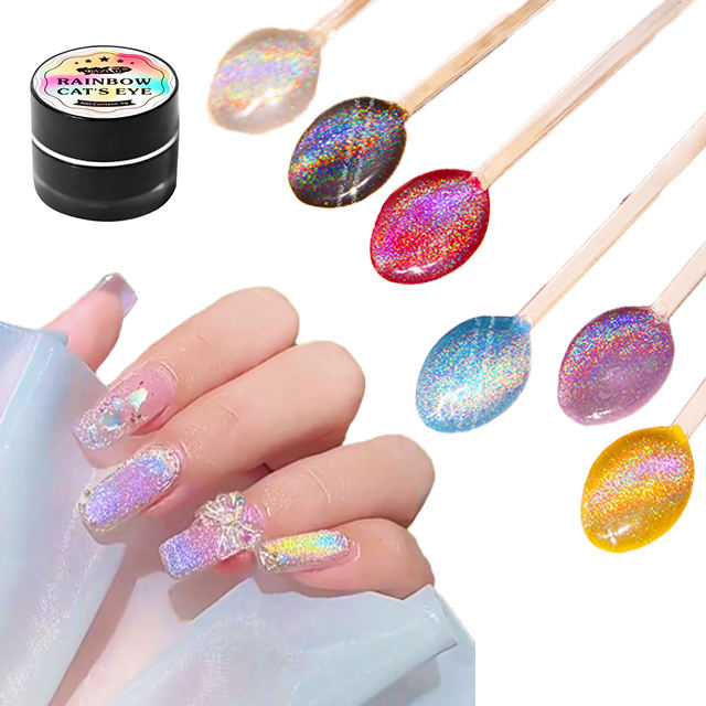 6 Colors Rainbow Cat Eye Gel Soak Off Magnetic Uv Gel Sparkling Auroras Nail Art Gel