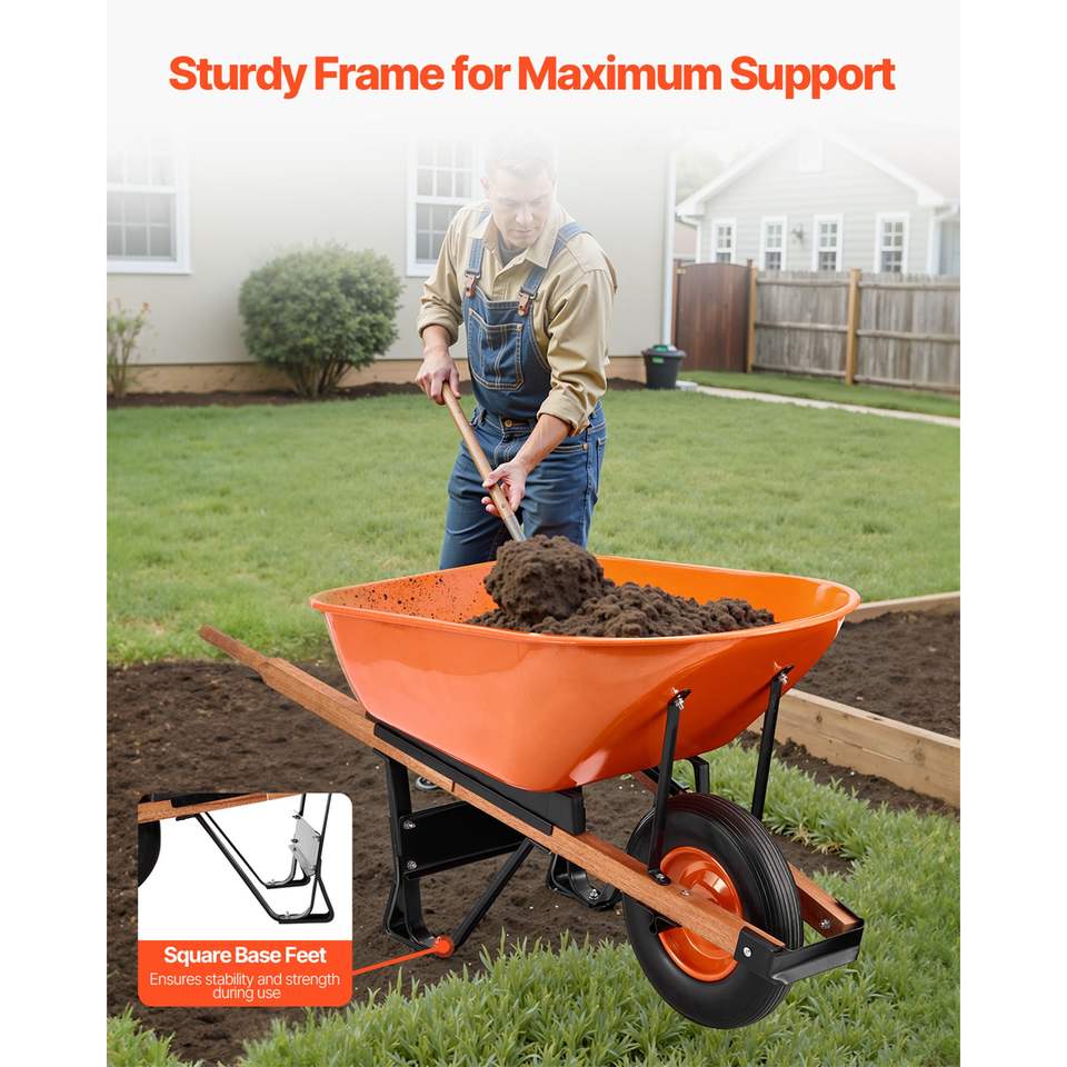6 Cu. Capacità di carico: 330 libbre. Carriola con ruota singola da 16 pollici, manico in metallo, per giardino, categoria prodotto 100%
