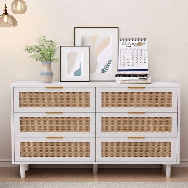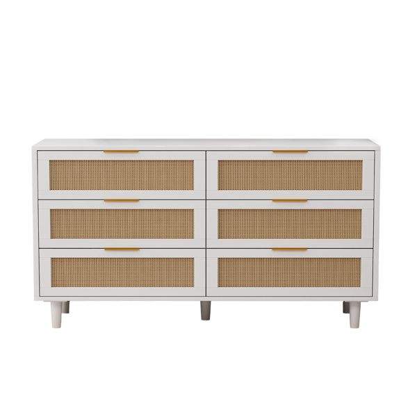 6-Drawers 51.18\" Rattan Storage Cabinet for Bedroom & Living Room White Rattan Drawer