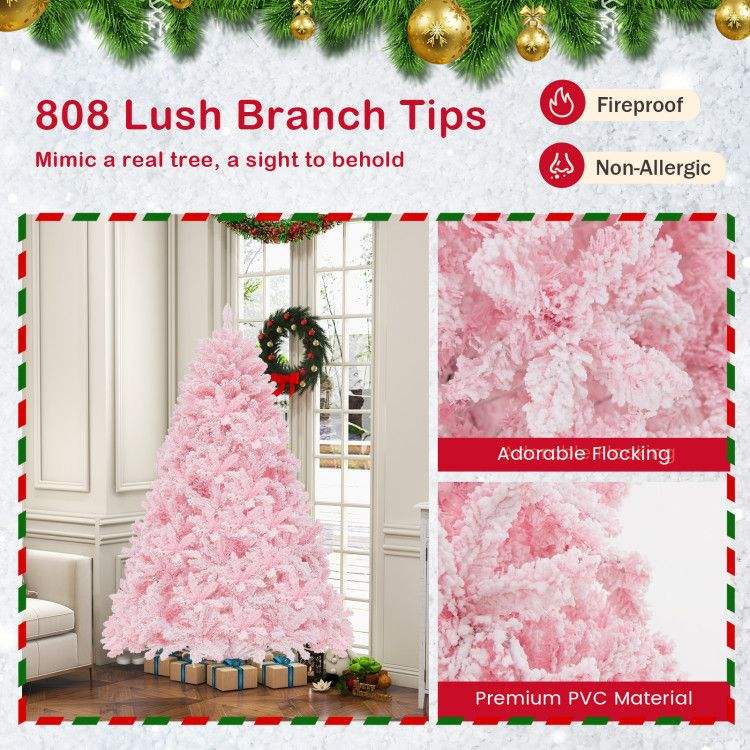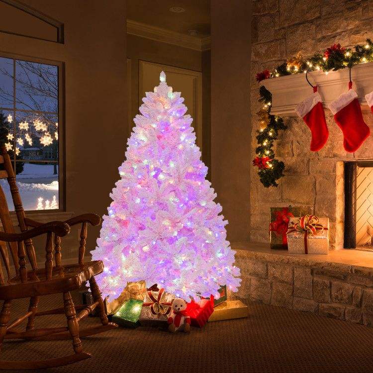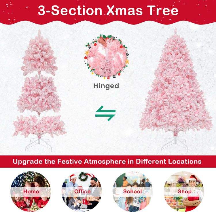 Albero di Natale Artificiale Innevato da 1,8 m con 350 Luci LED, Decorazioni Natalizie con Rami Pieghevoli