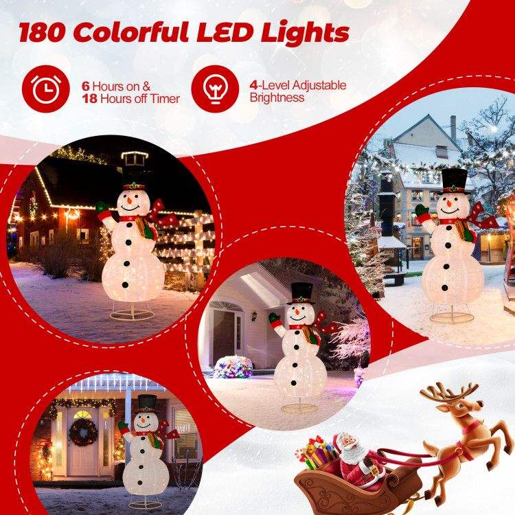 Pupazzo di Neve Illuminato di 1,8 Metri per Decorazioni Natalizie da Esterno, 180 Luci LED Colorate, Ornamento Gonfiabile Natalizio da Giardino