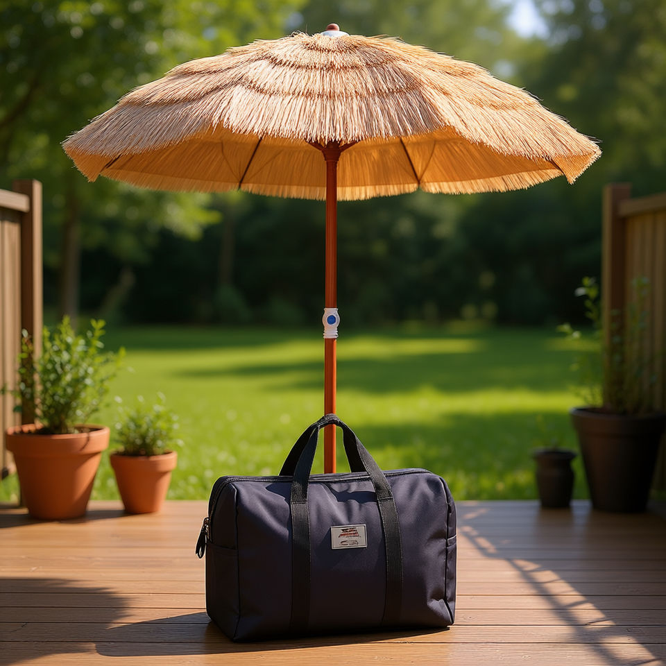 Thatched Patio Umbrella 6 Ft Tilt Design Wood Pole Straw Material Outdoor Use With Carrying Bag
