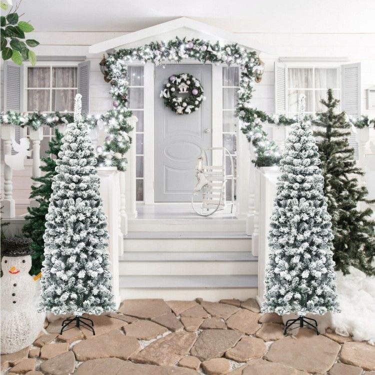 Albero di Natale Artificiale a Forma di Matita, Innevato, Non Illuminato, 1,8 Metri, con 500 Punte di Rami