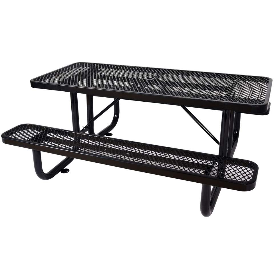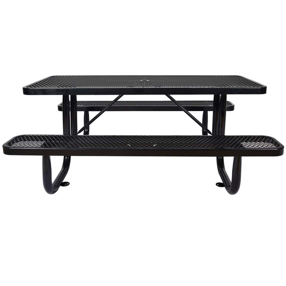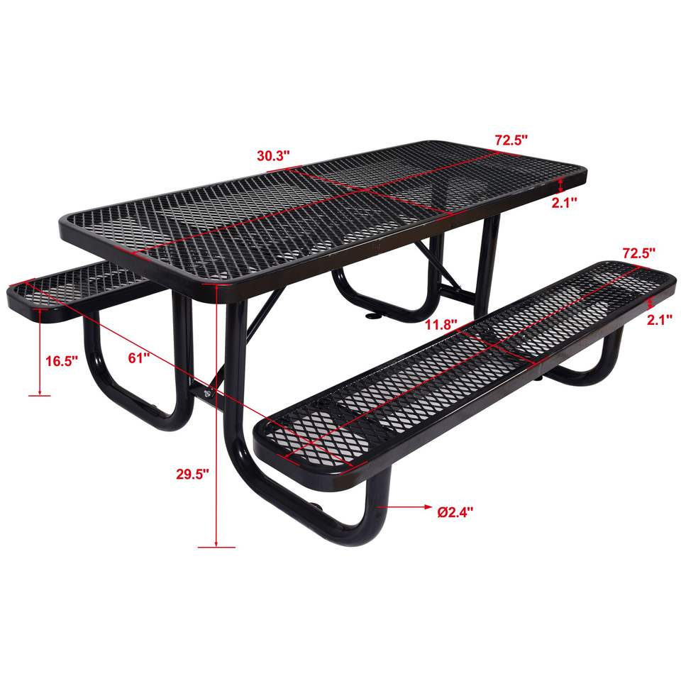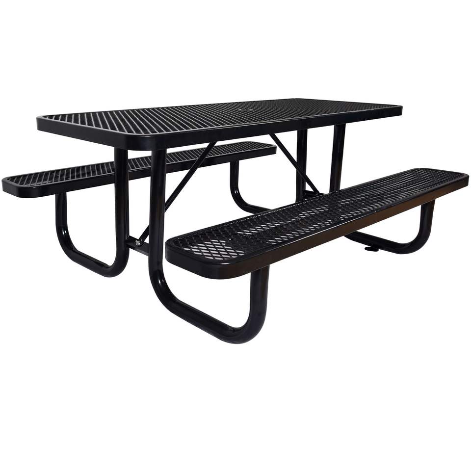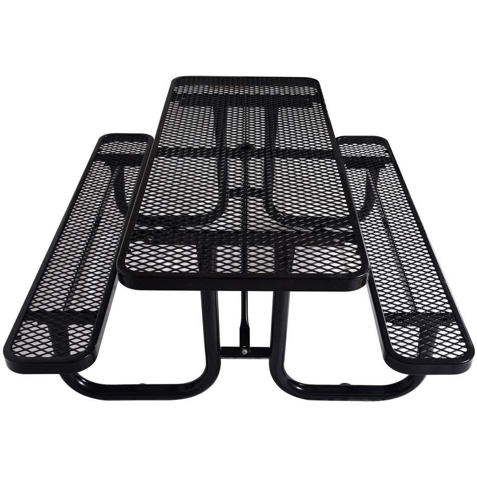 Tavolo da Picnic Rettangolare in Acciaio Nero da 6 Piedi per Esterni con Supporto per Ombrellone