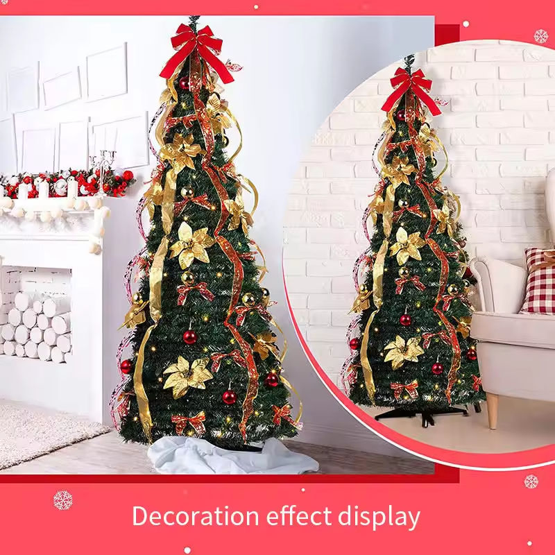 Albero di Natale Artificiale Pieghevole Pre-illuminato e Pre-decorato da 6 Piedi con Luci, Supporto e Accessori
