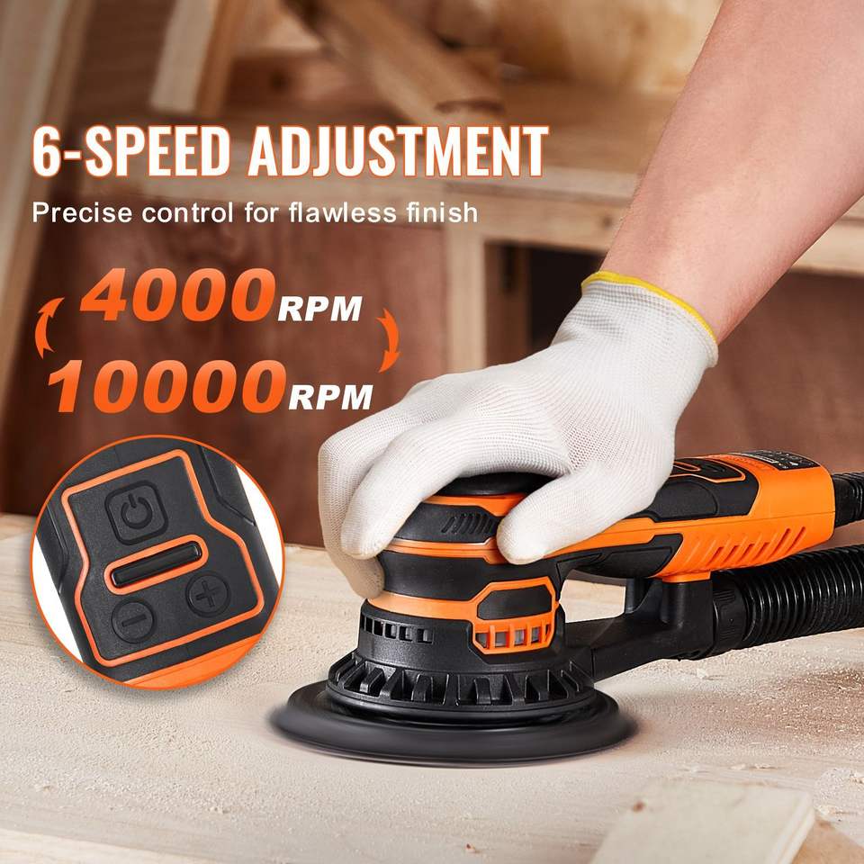 Levigatrice palmare elettrica brushless da 6 pollici 350W, levigatrice orbitale casuale con 10.000 giri/min, 6 velocità variabili, 10 dischi abrasivi inclusi