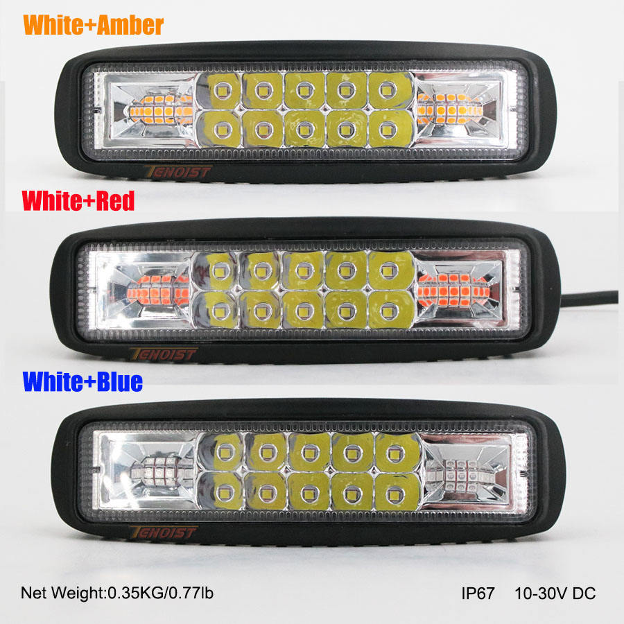 Barra Luminosa a Led da Lavoro Stroboscopica da 6 Pollici 48W Luce Gialla e Bianca per 4X4 Fuoristrada Atv Jeep SUV Moto Camion Rimorchio Accessori 12V