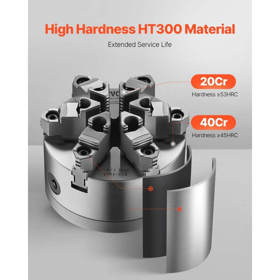 Mandrino per tornio a 6 griffe da 6 pollici con funzione autocentrante, piastra di supporto con blocco a camma D1-4, intervallo di serraggio 0,12-5,71 (3-145 mm)