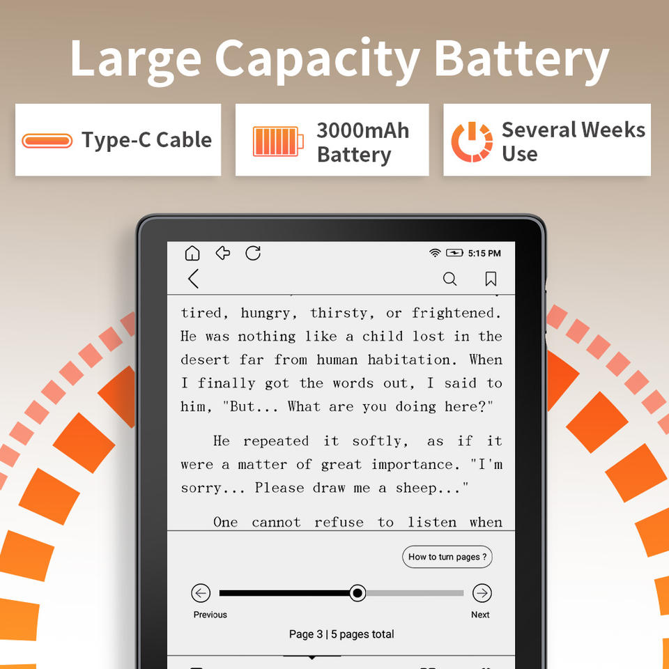 E-Reader con Schermo E-Ink da 6 Pollici, WiFi, 1GB RAM, 32GB Memoria, Luce Regolabile Calda/Fredda, Lettore di Libri Digitali