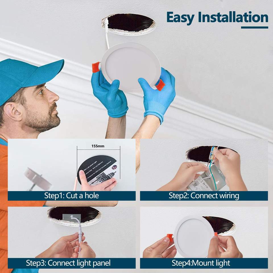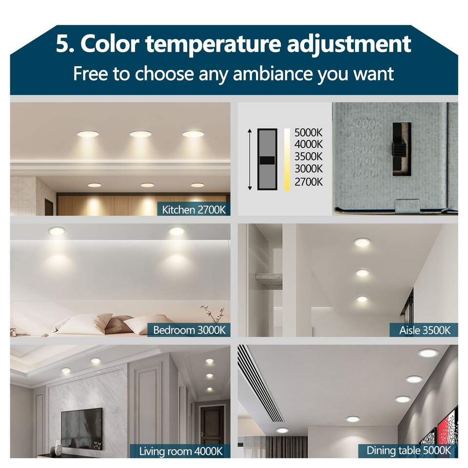 Luci LED da Incasso Ultra-Sottili da 6 Pollici, Confezione da 12, 5 Opzioni di Temperatura Colore 2700K 5000K, 12W 1080LM