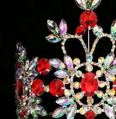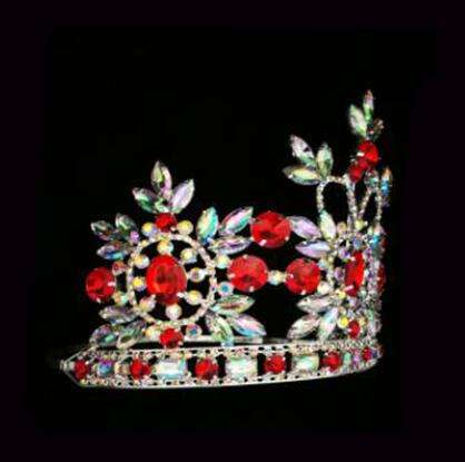 Diadema a corona rotonda in cristallo rosso con strass rubino da 6 pollici per regina