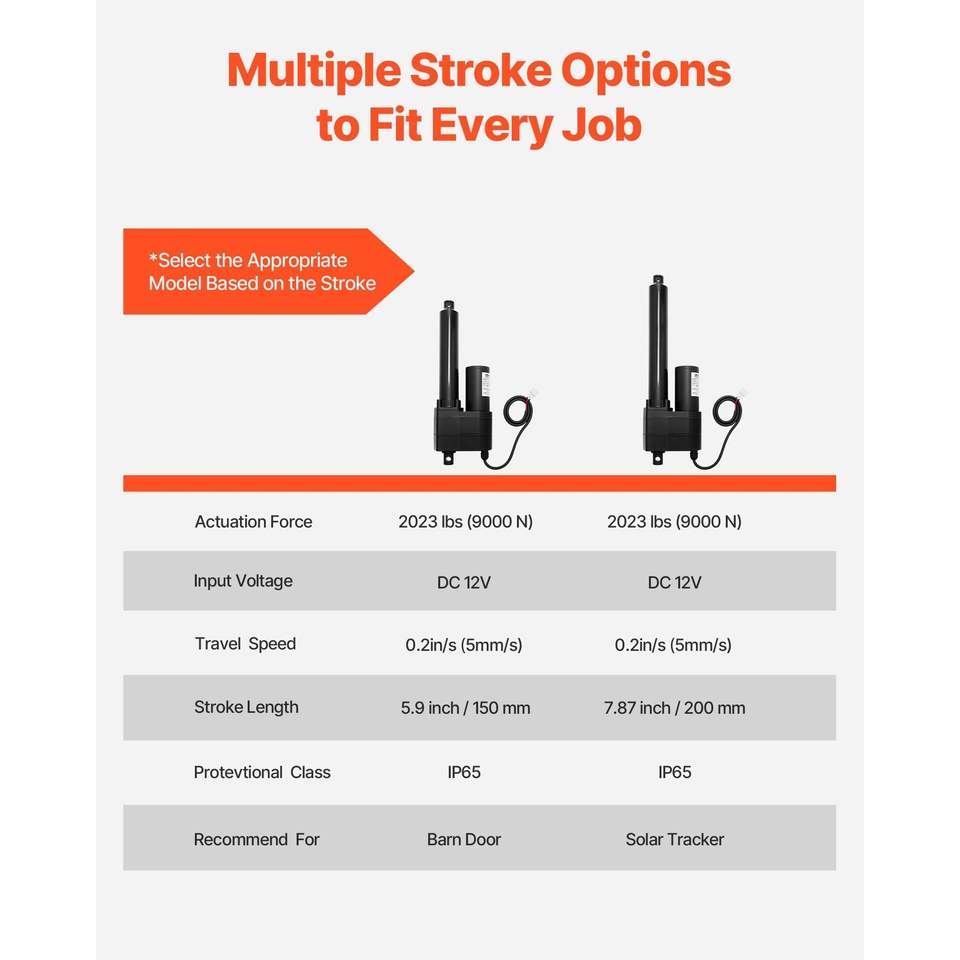 Attuatore Lineare Ultra Resistente da 6 Pollici, 2023 libbre/9000N, 12V, Impermeabile IP65, 0.2 pollici/s, con Staffa di Montaggio e Cilindri