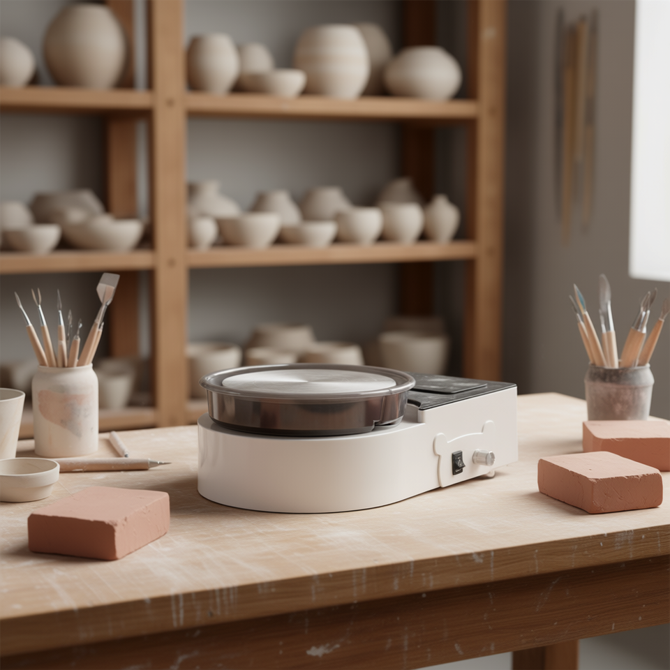 Mini Electric Clay Wheel 6 Inch White Pottery Turning Tool Manual Control Round Shape For Kids And Adults