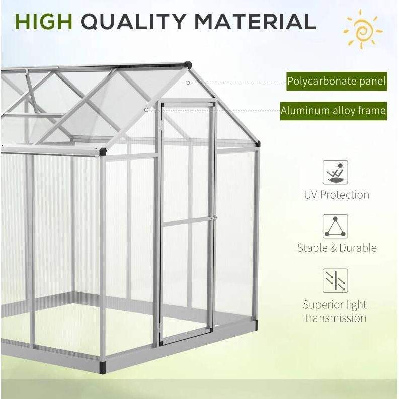 Serra in Policarbonato 6 L X 6 W con Tetto Ventilato, Serra Invernale per Hobby, Serra da Giardino con Grondaia per la Ventilazione