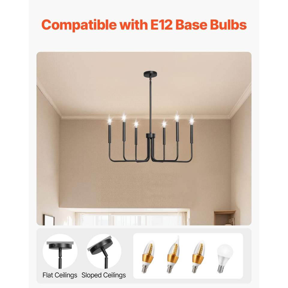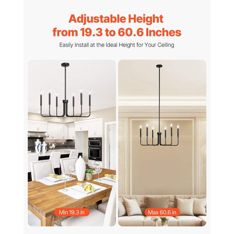 Lampadario Moderno Stile Fattoria a 6 Luci, Altezza Regolabile, Nero, Lampada a Sospensione per Sala da Pranzo, Certificato CE