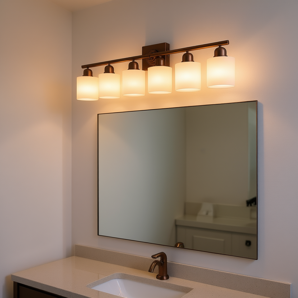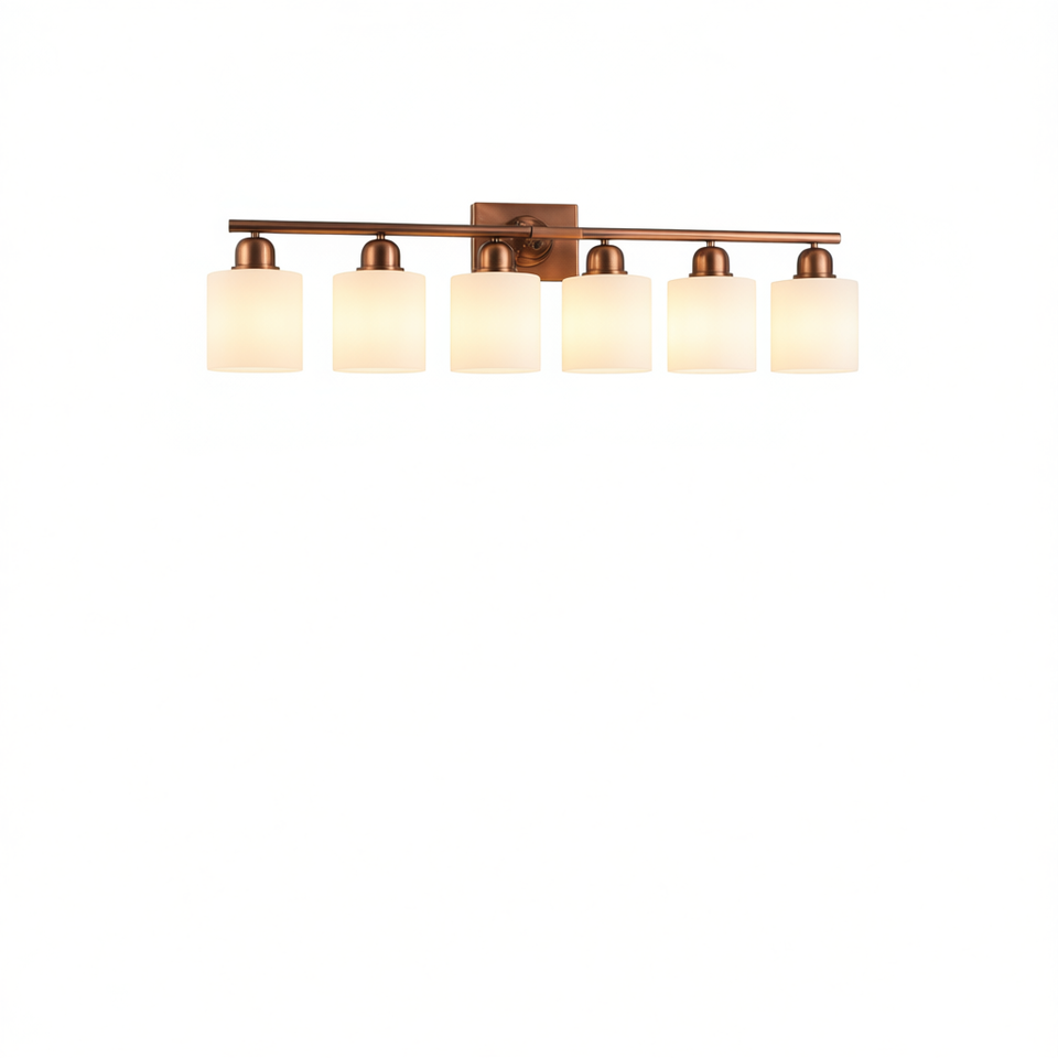Moderna Lampada da Bagno a 6 Luci in Ferro Ramato, 38 Pollici, Montaggio a Parete, LED Spazzolato, Luce Bianca Calda per Specchio