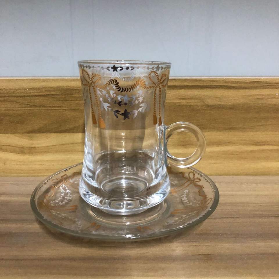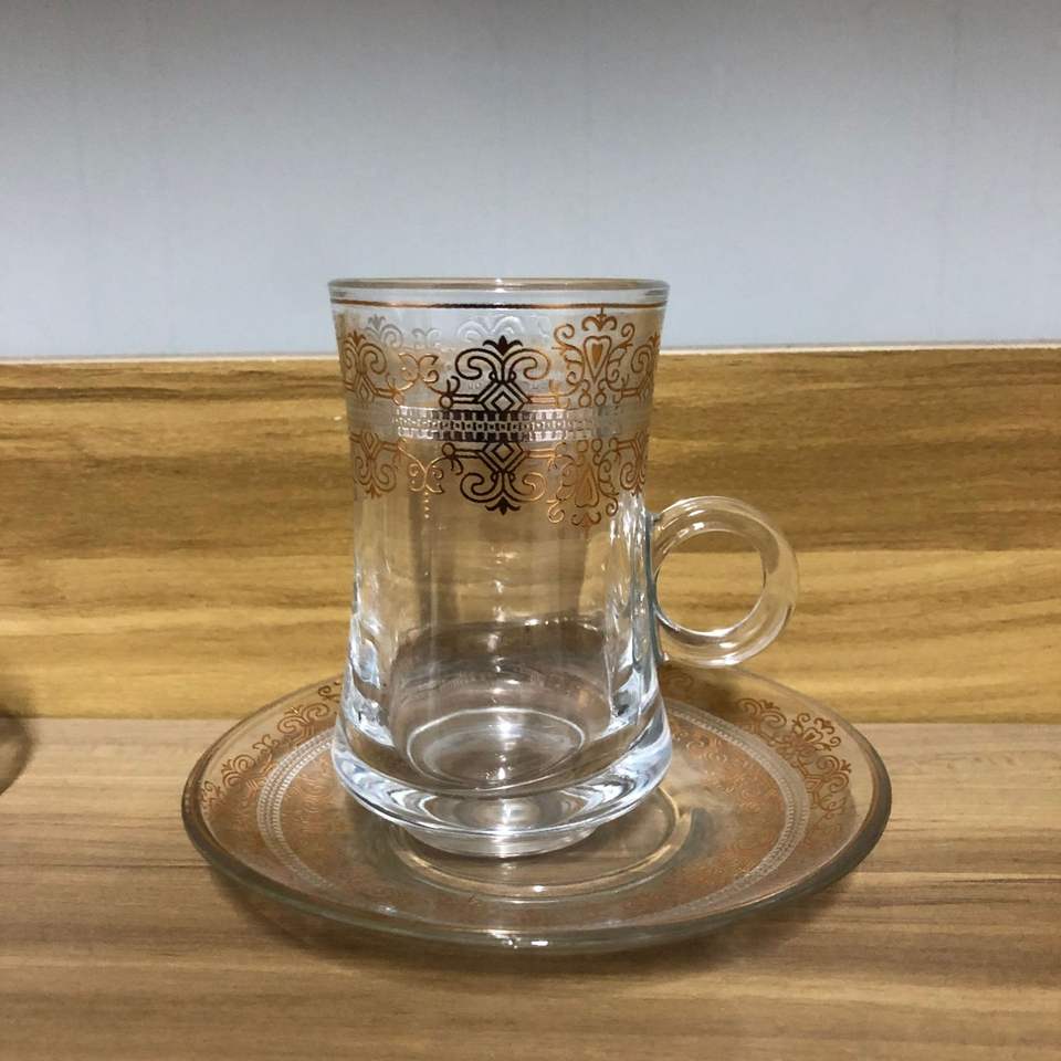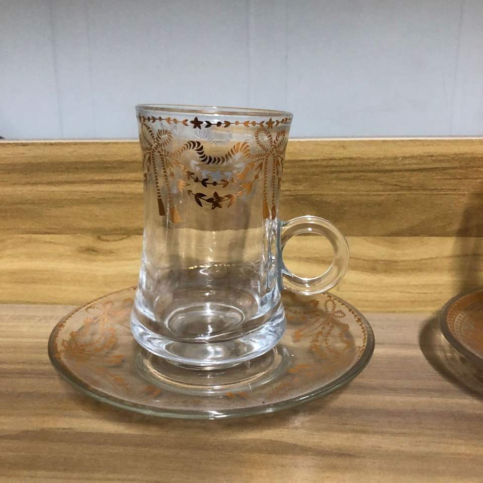 Set di 6 Tazze da Caffè di Lusso in Vetro con Piattino, Design Turco Classico per Uso Domestico, Stile Arabo