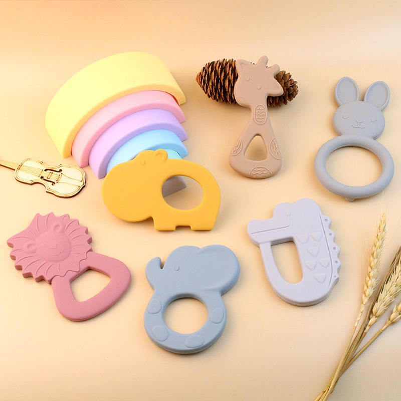 6 mesi massaggiagengive animale a forma di elefante leone caldo 100% dentini in gomma naturale in Silicone tegole masticato giocattolo per bambini