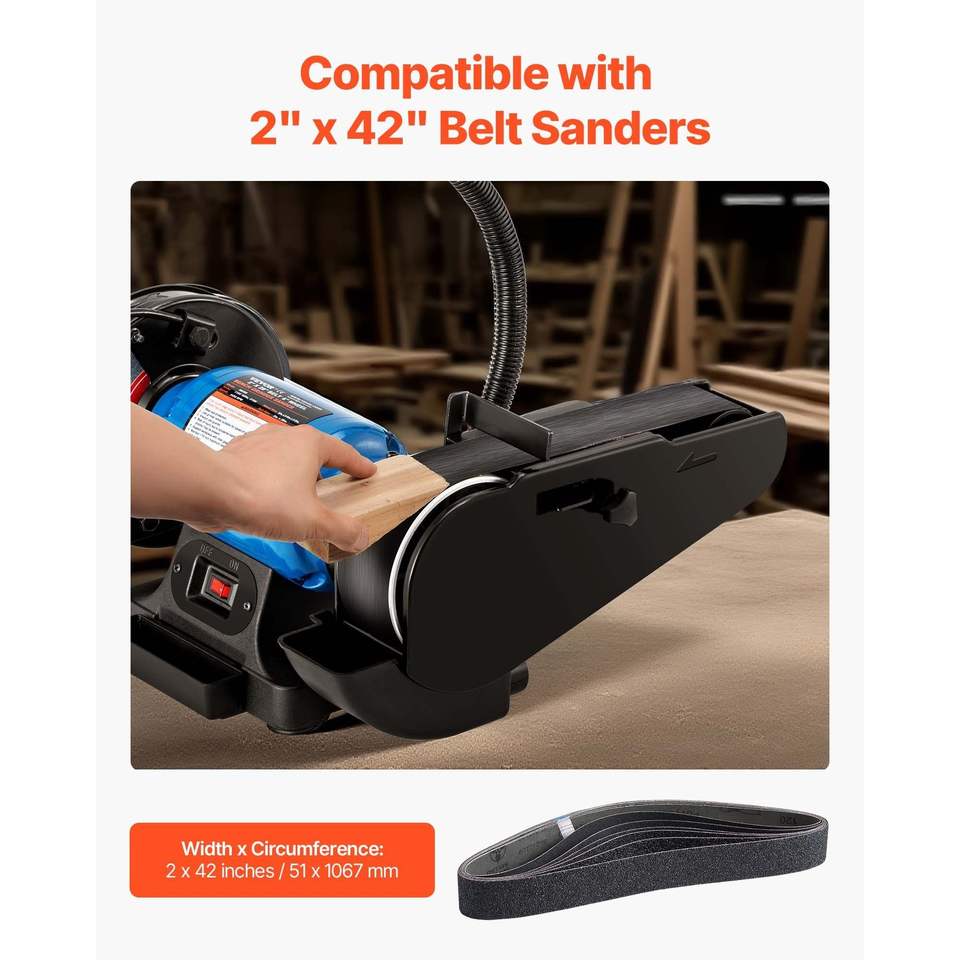 Set di 6 Nastri Abrasivi in Carburo di Silicio da 2 x 42 Pollici, Ciascuno con 36, 40, 60, 80, 100, 120 Grane Assortite per Levigatrice a Nastro