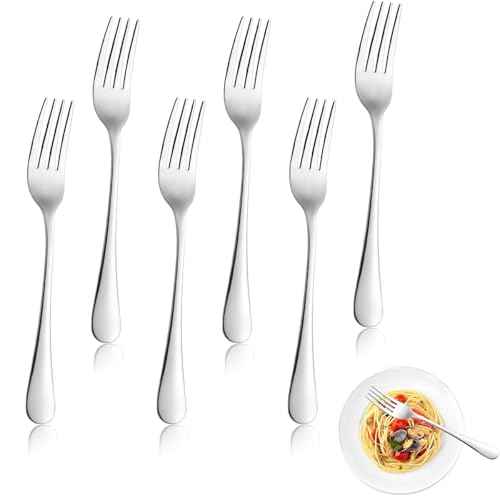 Set di 6 Forchette da Cena Ecologiche e Sostenibili in Acciaio Inox Argento, 8 Pollici, Finitura a Specchio, Lavabili in Lavastoviglie, per Casa