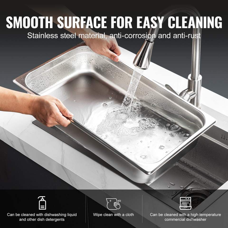 Set di 6 Vaschette Professionali in Acciaio Inox da 0,8 mm di Spessore, Profondità 4 Pollici, Design Anti-Incaglio per Facile Utilizzo in Ristoranti e Hotel