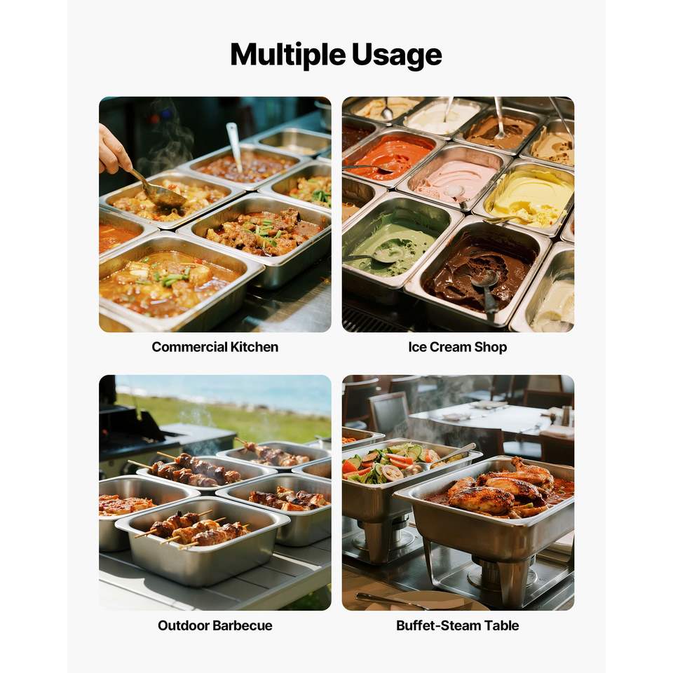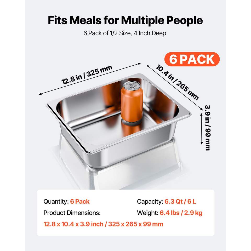 Set di 6 Vaschette per Buffet in Acciaio Inox, Misura 1/2, Profondità 4 Pollici, Antiaderenti, Attrezzatura Riutilizzabile per Hotel e Ristoranti