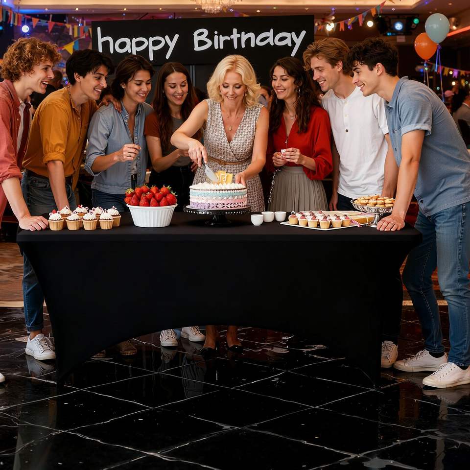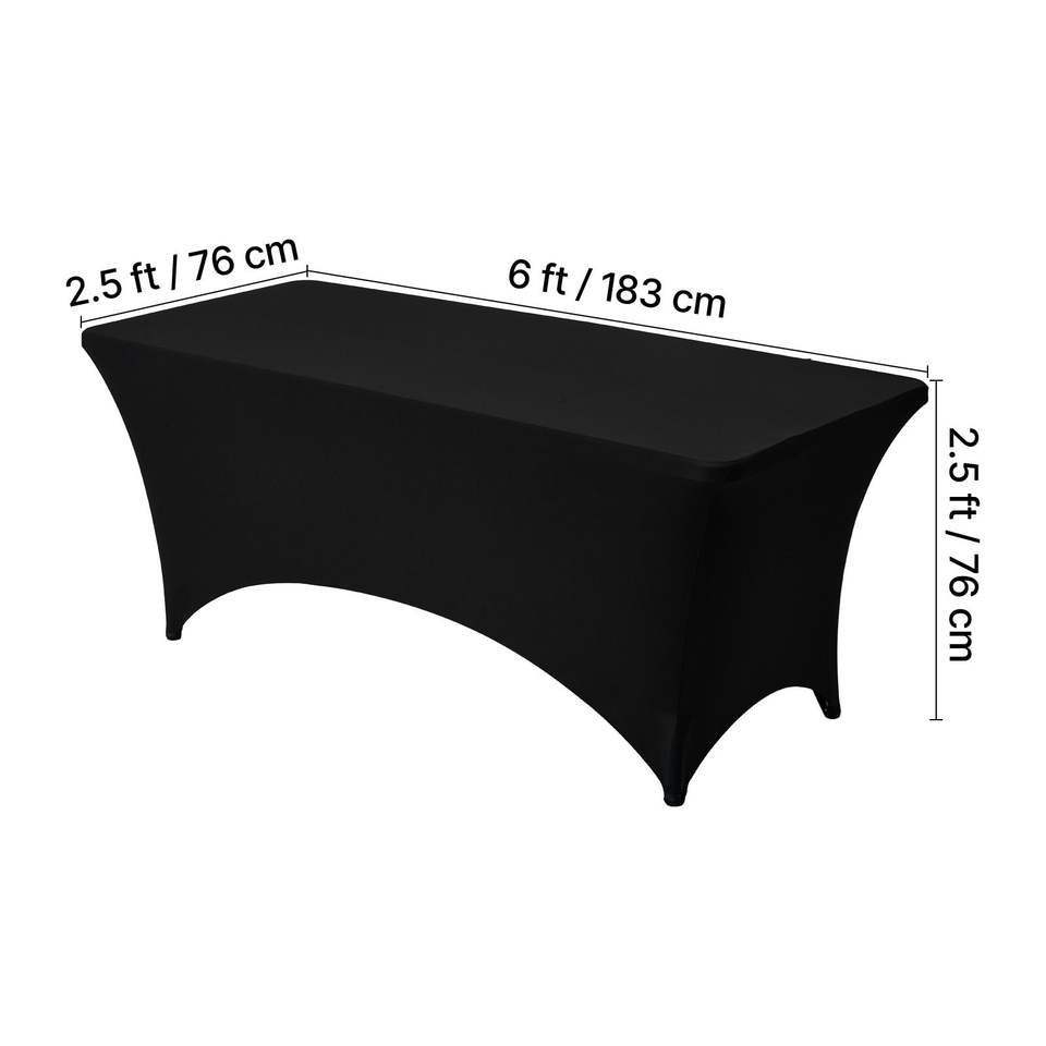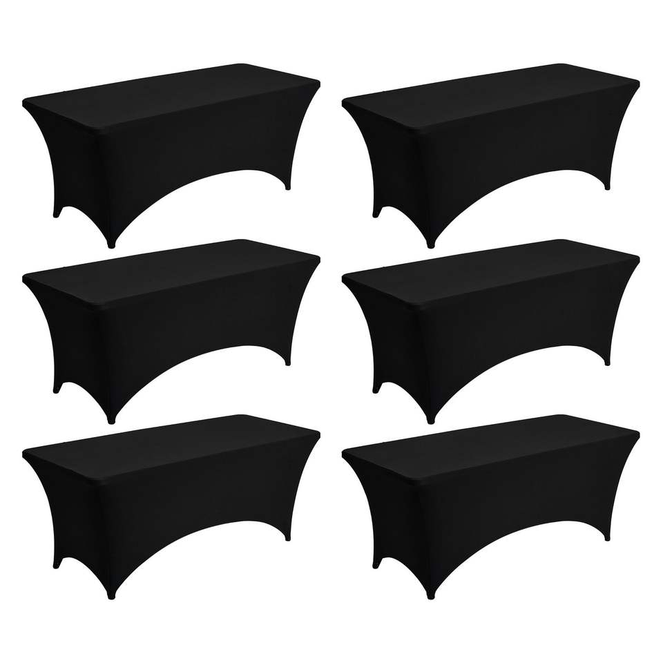 Set di 6 Tovaglie Rettangolari in Spandex da 6 Piedi, Lavabili, Antipiega, Elasticizzate, Nere, per Eventi e Decorazioni da Tavola