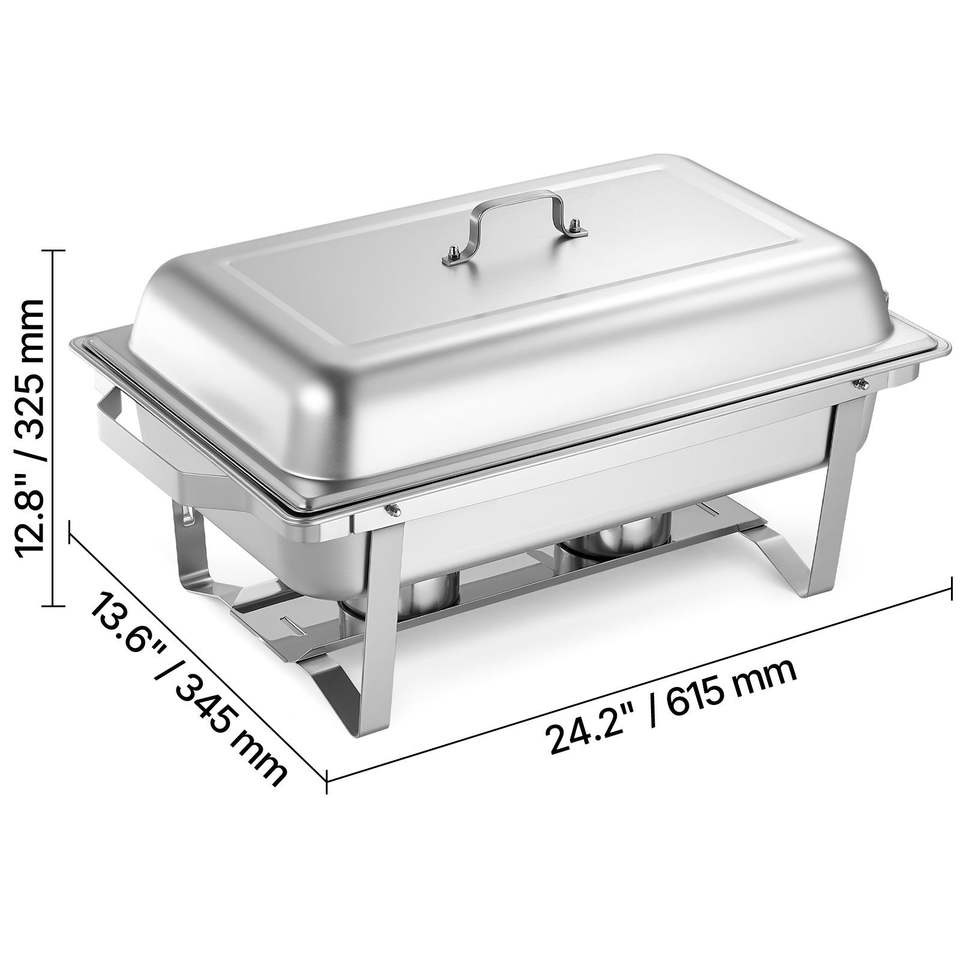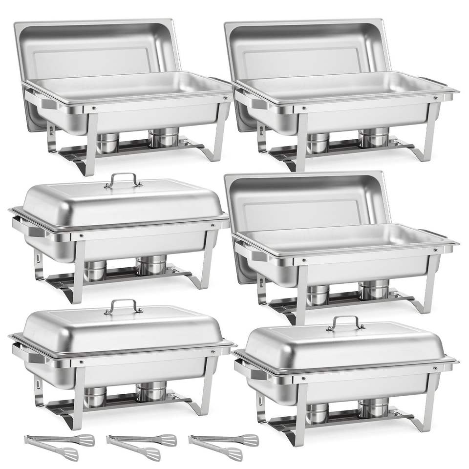 Set di 6 Chafing Dish Rettangolari in Acciaio Inossidabile da 9 Qt, Scaldavivande Completo con Manico Cavo, Attrezzatura per Mantenere il Calore