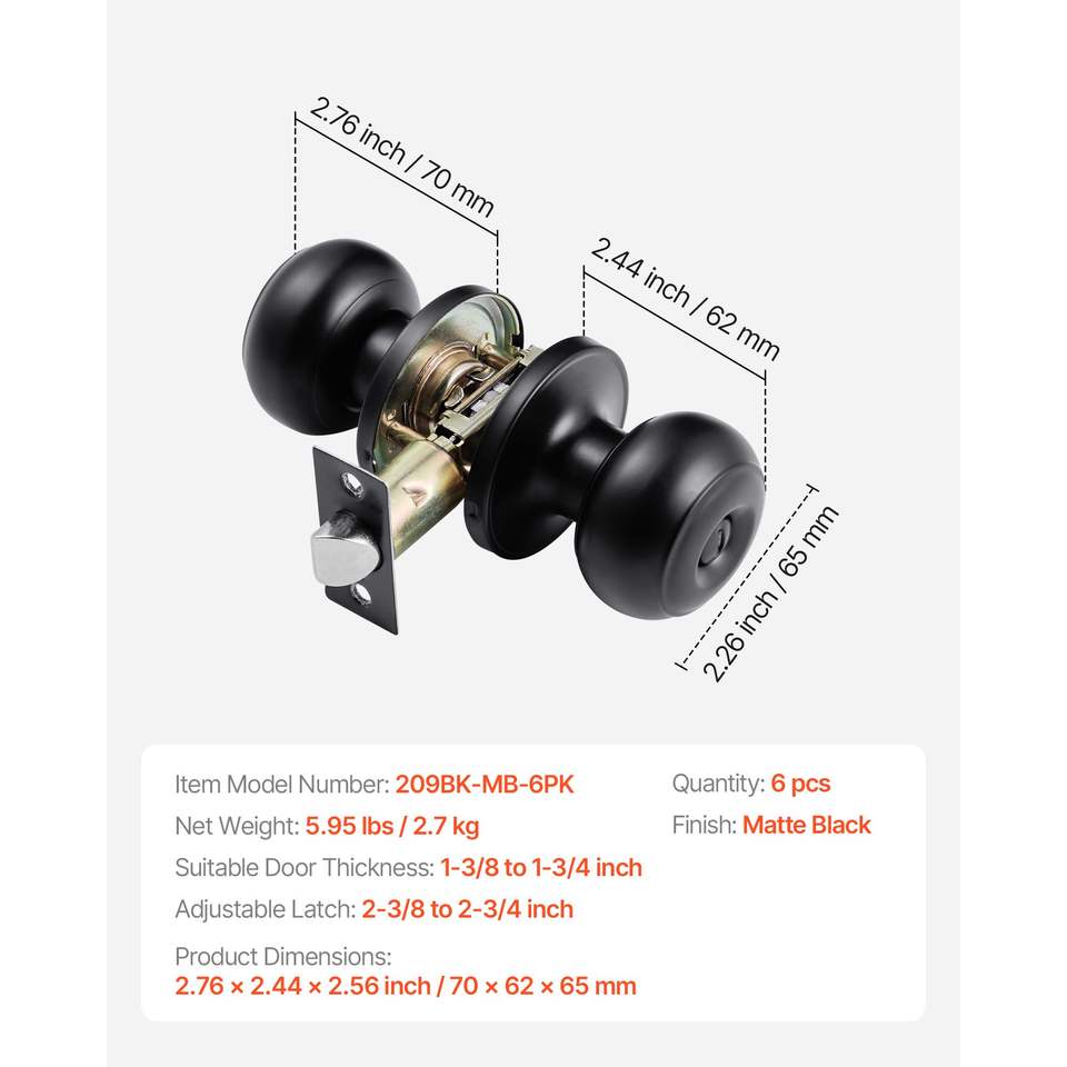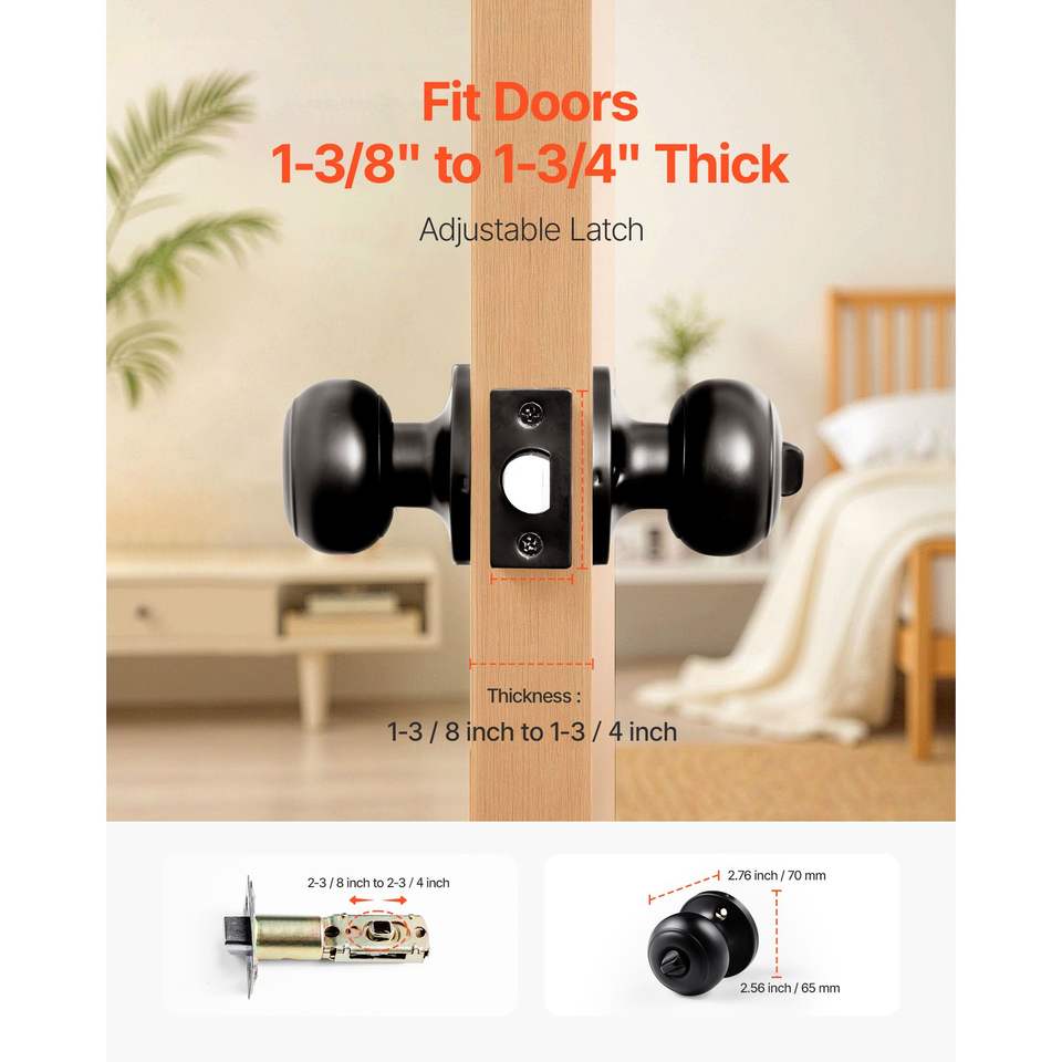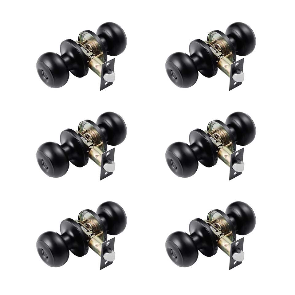 Set di 6 Maniglie per Porte Interne in Metallo Nero, Serratura a Rotazione Senza Chiave con Pulsante di Privacy per Casa o Ufficio