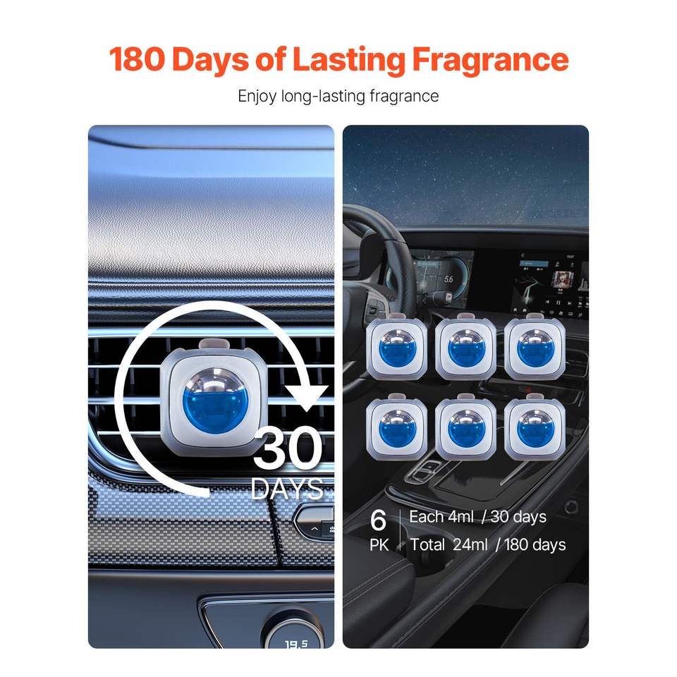 Confezione da 6 Deodoranti per Auto con Intensità Regolabile, Nuova Fragranza, Clip per Bocchette di Ventilazione, Lunga Durata, 4ml, Profumo per 180 Giorni, Prodotto per Aromaterapia