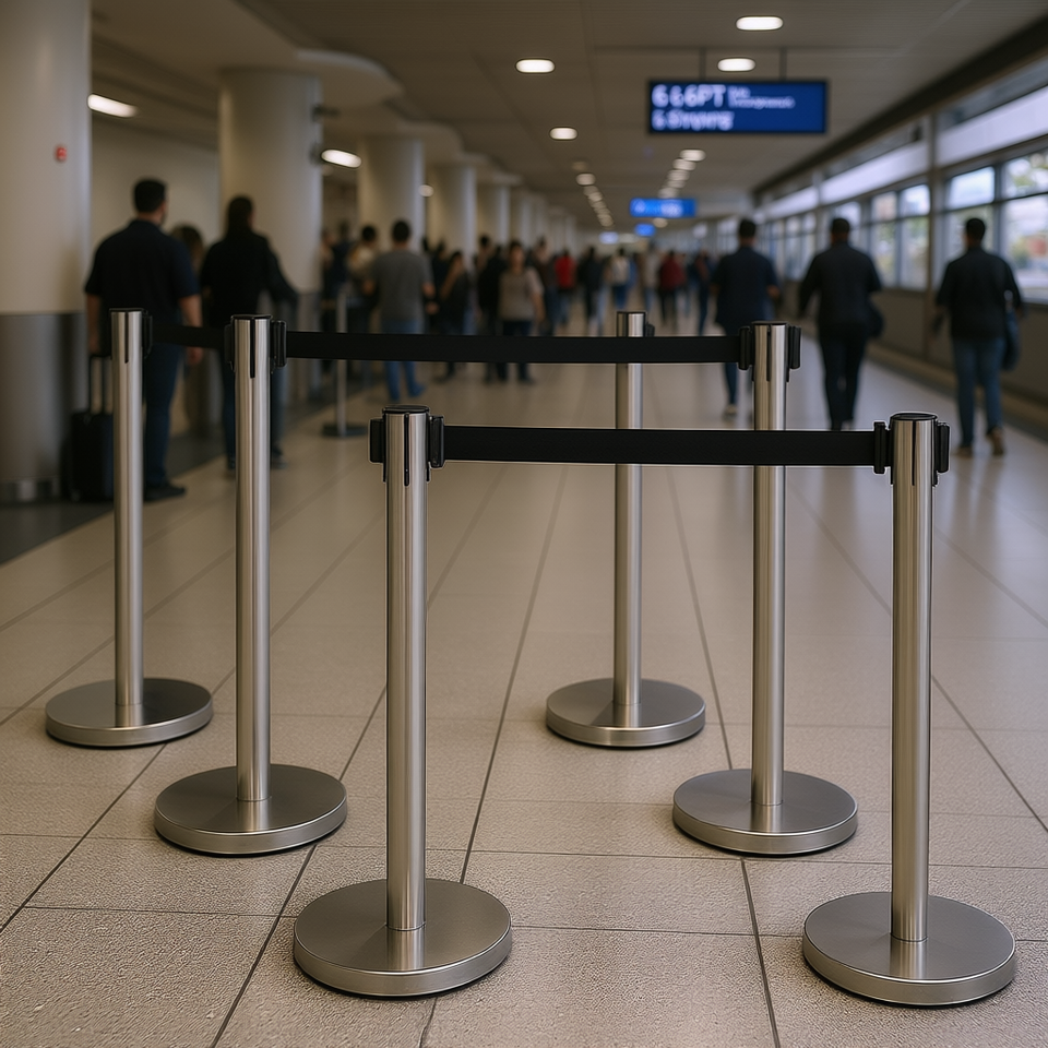 Carbon Steel Crowd Control Stanchion 6.6FT Retractable Belt Barrier Queue Post Security Access Control System