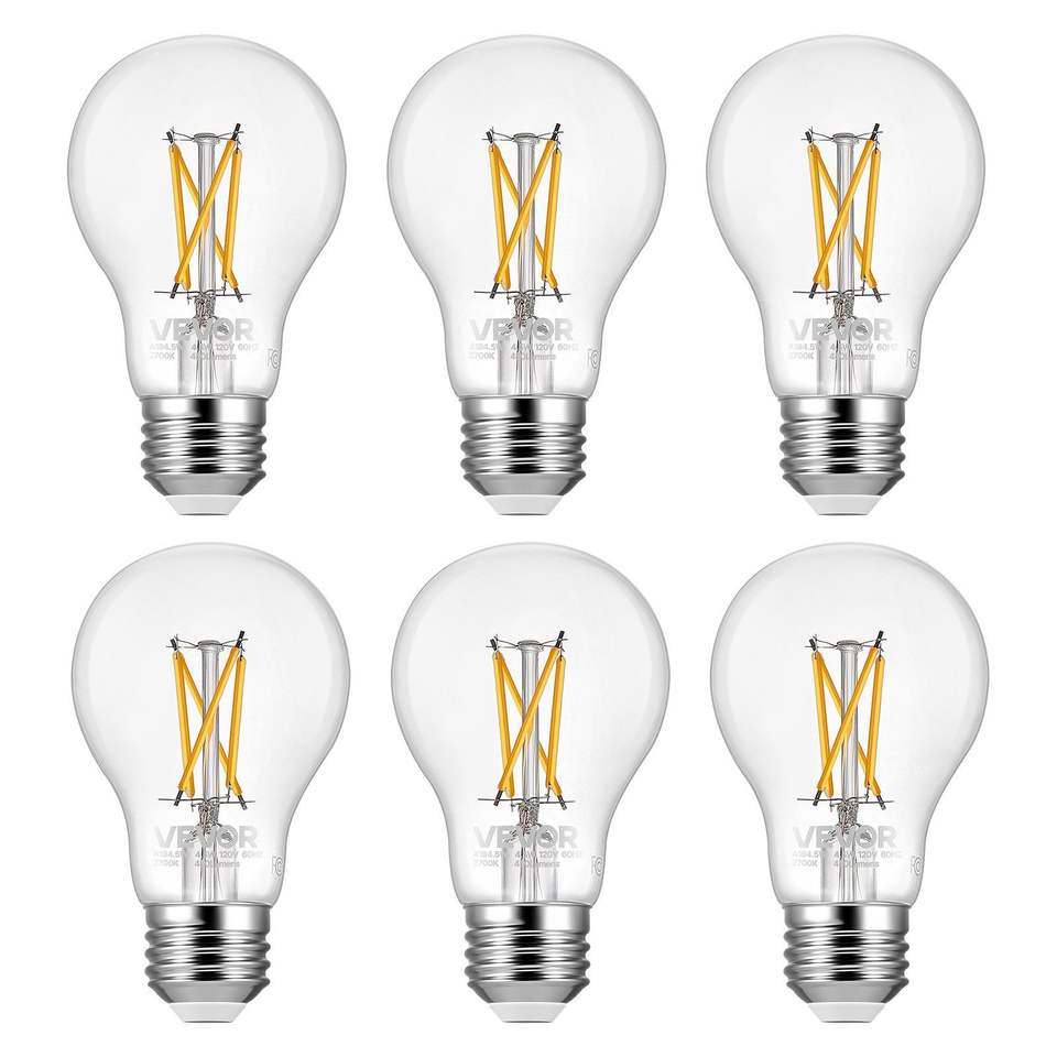 Confezione da 6 Lampadine LED A19 Dimmerabili Stile Vintage Edison, 4.5W 450 Lumen 2700K Bianco Caldo, Attacco E26