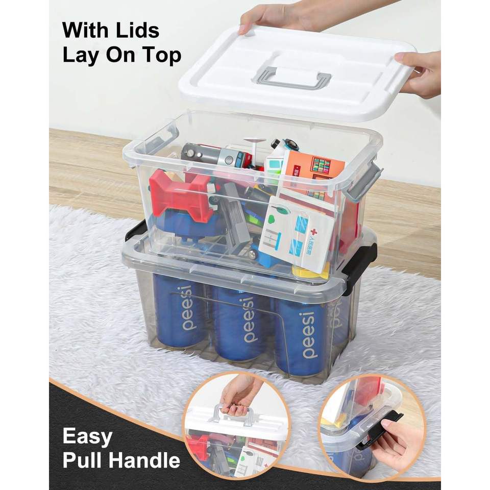 Set di 6 Contenitori di Plastica con Coperchi da 7 Quarti, Organizzatori Impilabili con Chiusure a Scatto, Facili da Maneggiare