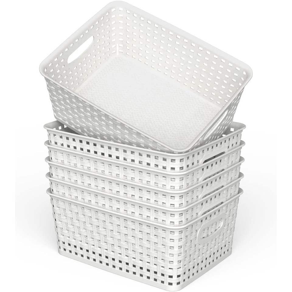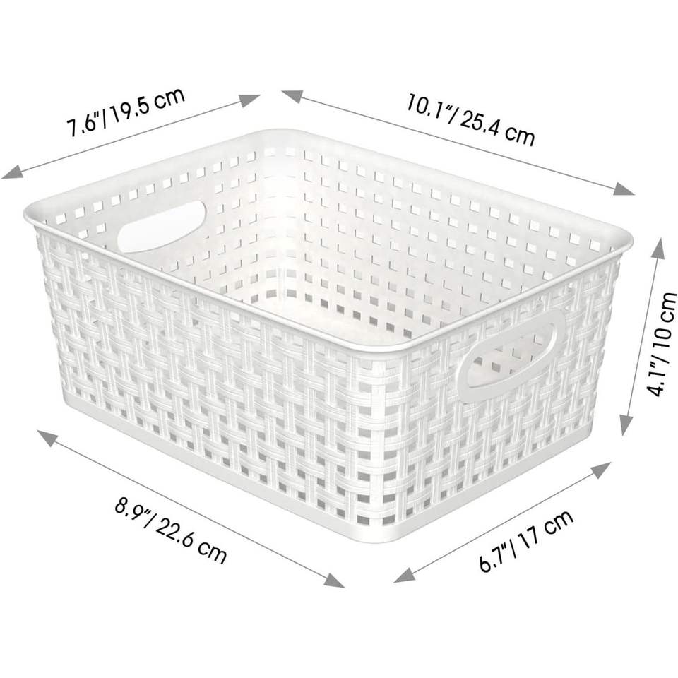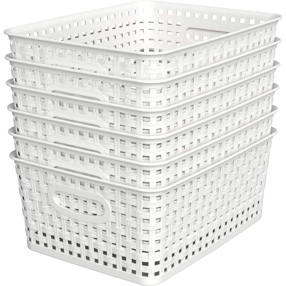 Set di 6 Cestini Portaoggetti in Plastica Intrecciata Bianca 25,7 cm x 19,2 cm x 10,4 cm Contenitori Organizzatori Intrecciati