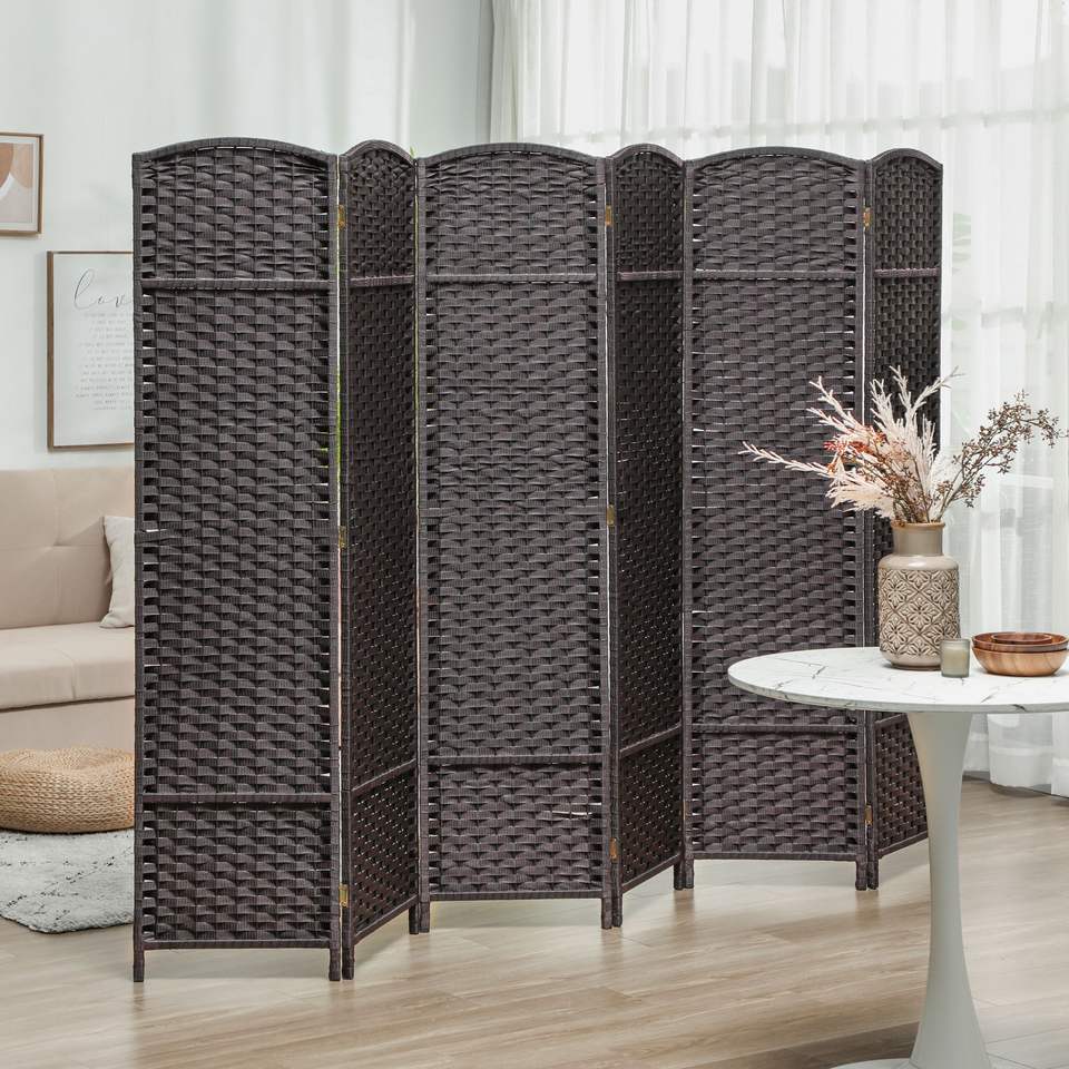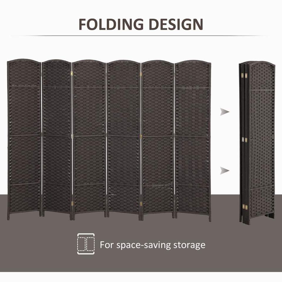 Paravento Pieghevole a 6 Pannelli, Alto 5,6 Piedi, Marrone, Divisorio per Stanza, Schermo per Privacy Autoportante per Casa e Ufficio