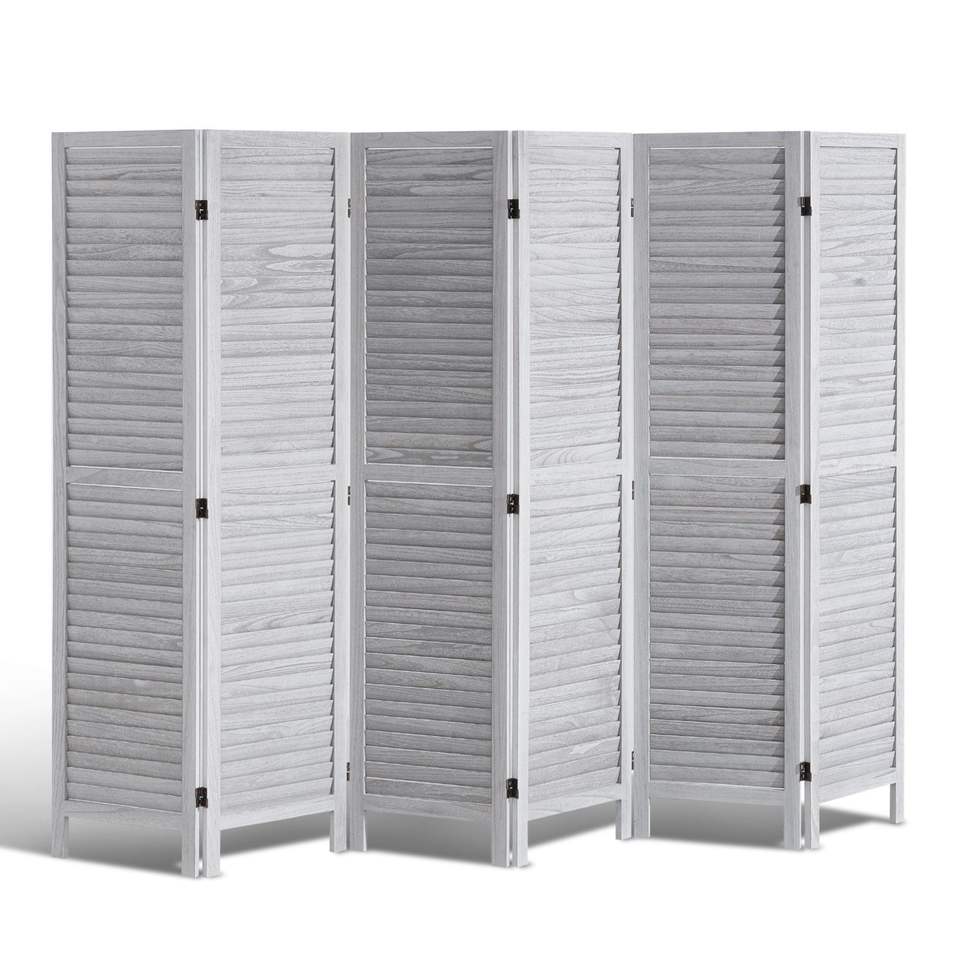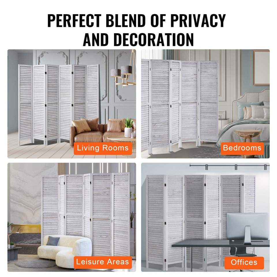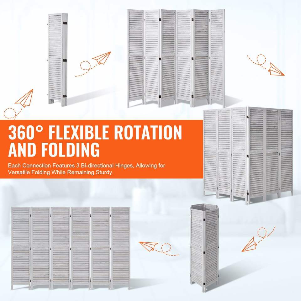 Divisorio per Stanza in Legno a 6 Pannelli, Alto 66,9 Pollici, Portatile, con Lamelle, Schermo Privacy Pieghevole per Arredamento Casa