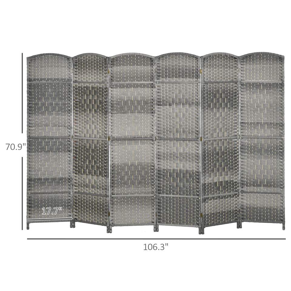 Divisorio Pieghevole a 6 Pannelli in Legno Grigio Misto Autoportante per Privacy, Ideale per Casa e Ufficio