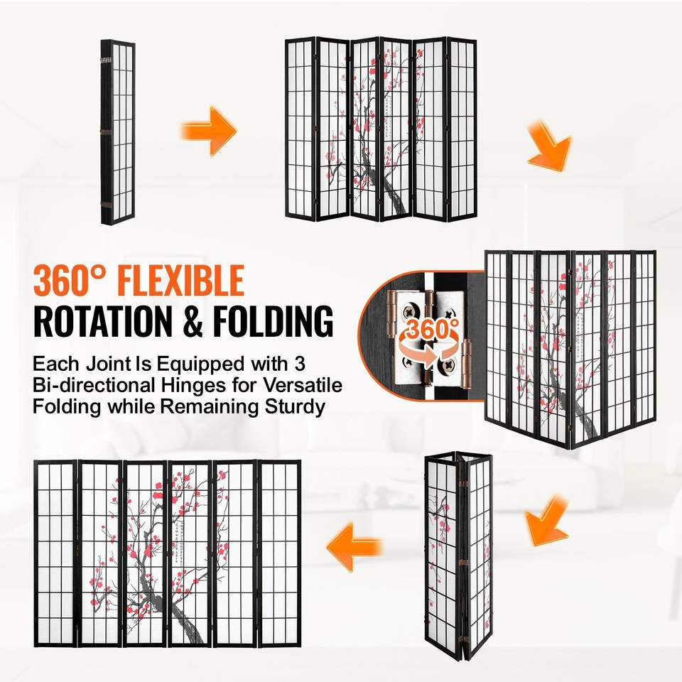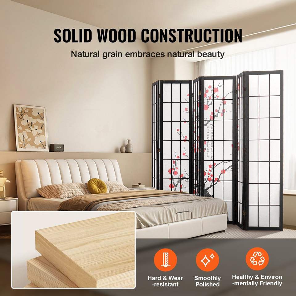 Paravento Giapponese Pieghevole a 6 Pannelli in Legno, Divisorio Portatile per Interni con Funzioni di Privacy per Arredamento Casa