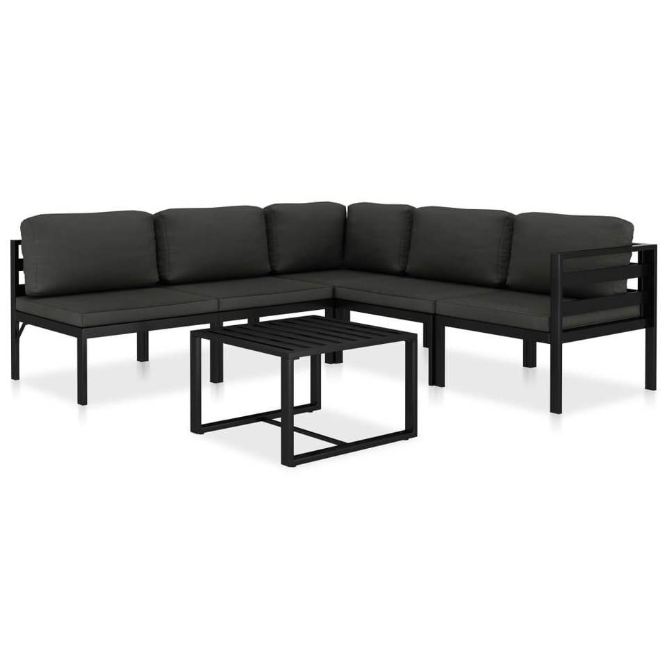 Set da salotto in alluminio antracite da 6 pezzi con comodi cuscini per intrattenere il giardino