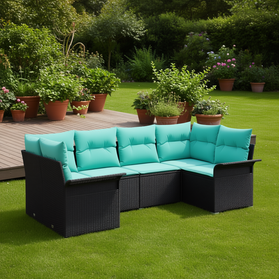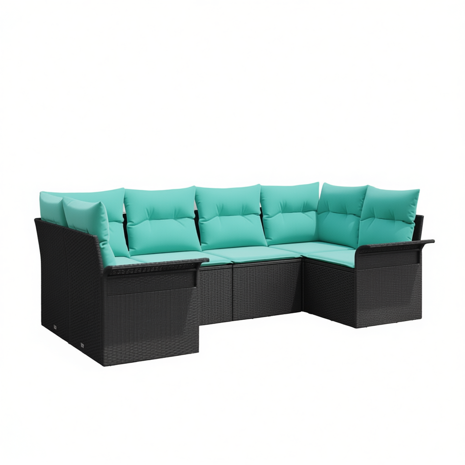 Set Divano da Giardino in Polyrattan Nero con Cuscini, 6 Posti, Arredamento da Esterno dal Design Contemporaneo