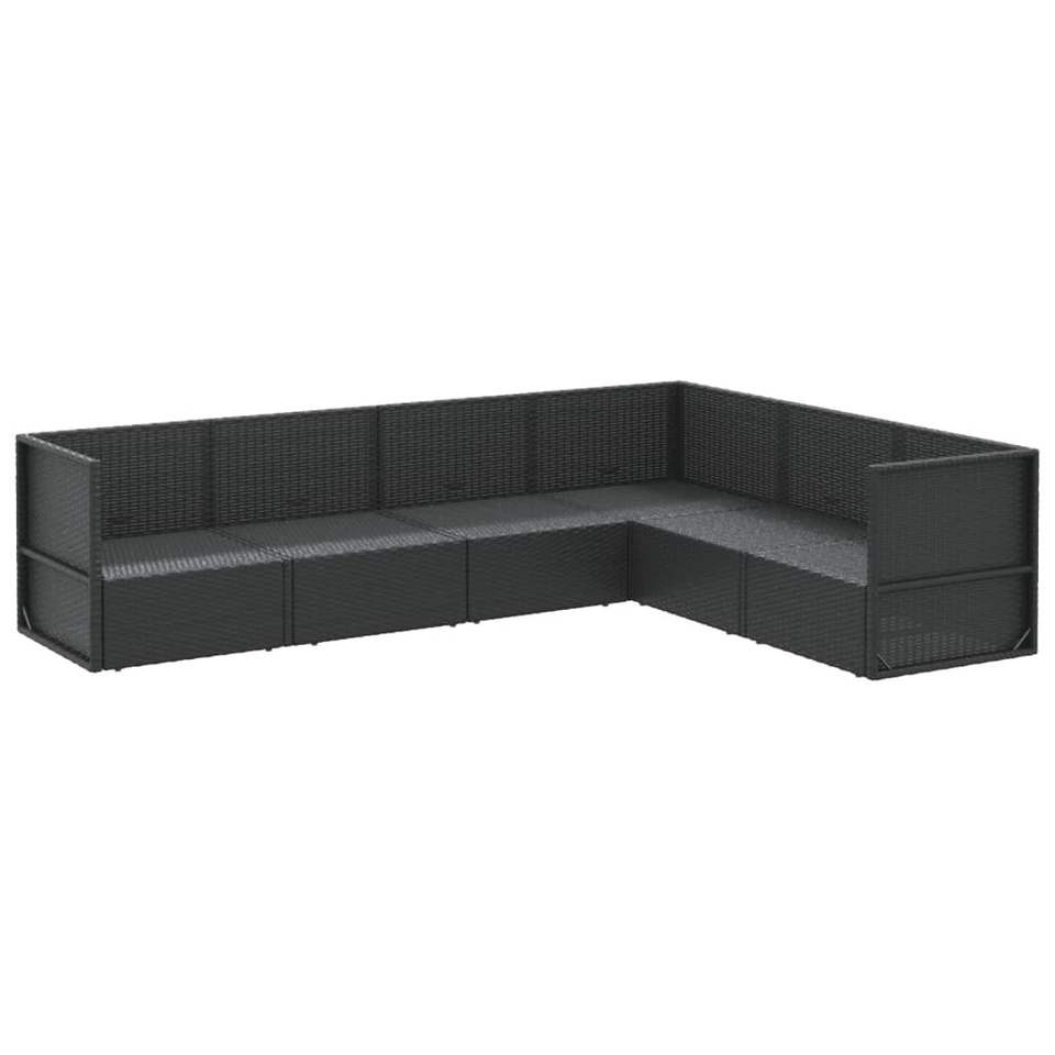 Set salotto Patio in 6 pezzi in Poly Rattan nero con cuscini Set da giardino