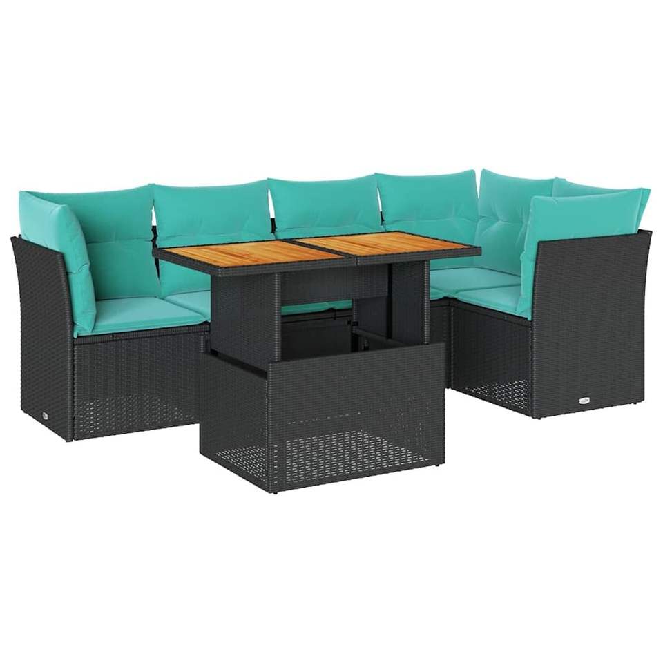 Set di divani da giardino in polyrattan nero da 6 pezzi con cuscini, mobili da esterno