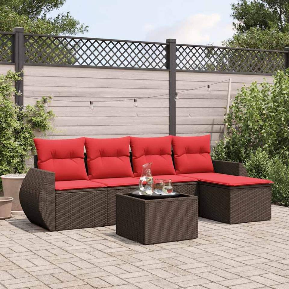 Set Divano da Giardino in Polyrattan Marrone con Cuscini, 6 Pezzi, Arredamento da Esterno Stile Contemporaneo