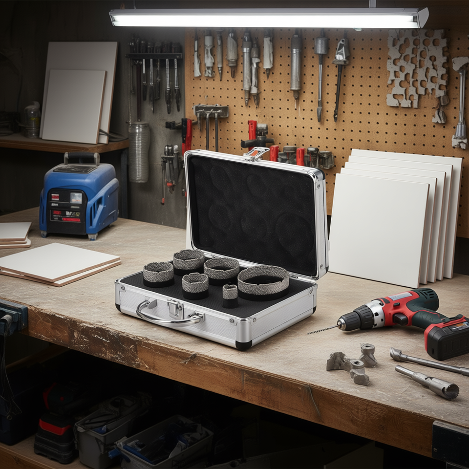 Set di 6 frese a tazza diamantate 20-68mm, punte diamantate brasate sottovuoto con mandrino integrato, per pannelli in truciolato, alte prestazioni
