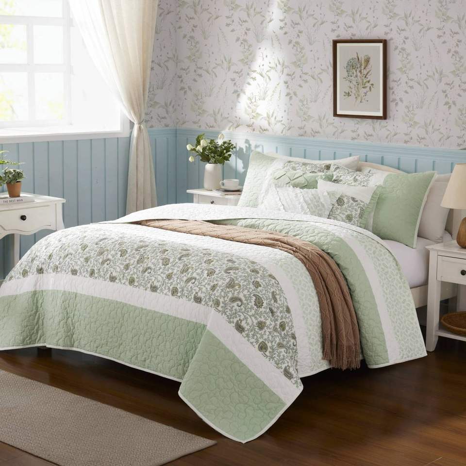 Set di trapunte in Percale di cotone pieno/regina da 6 pezzi con cuscini eleganti collezione di biancheria da letto