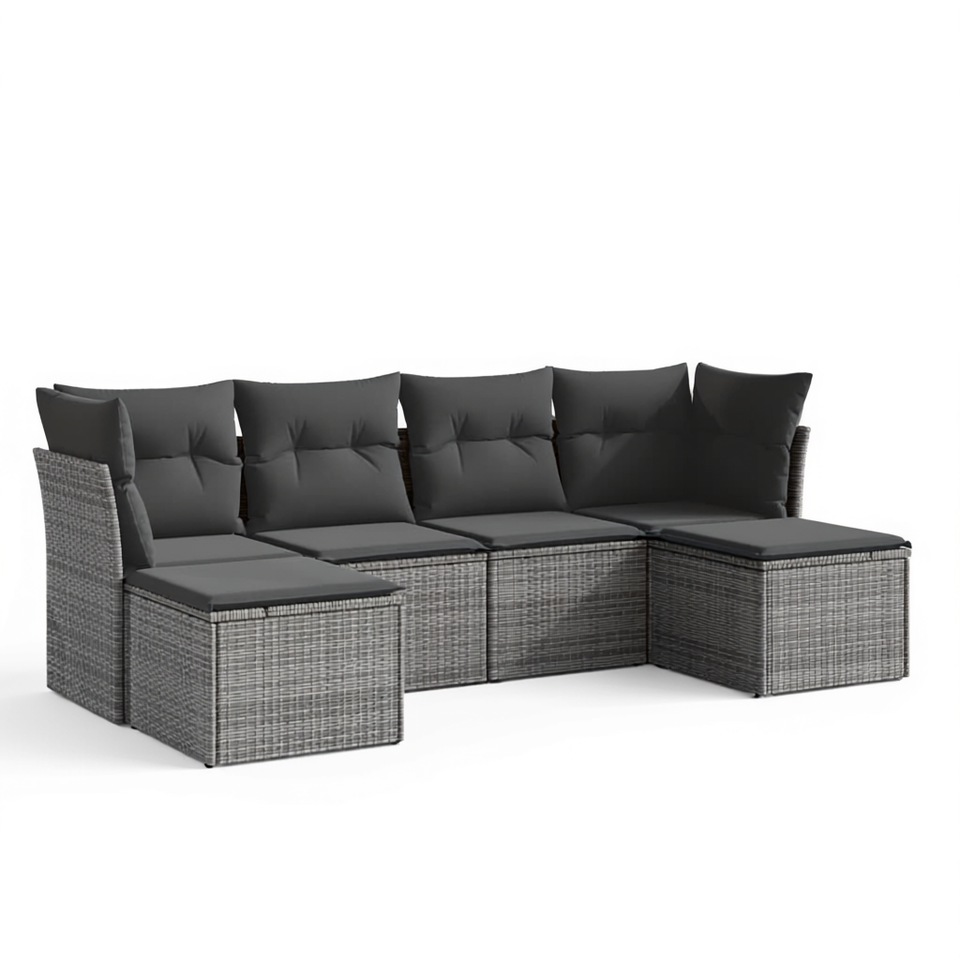 Set Divano da Giardino 6 Pezzi in Rattan PE Grigio con Telaio in Acciaio, Arredamento da Esterno dal Design Contemporaneo, Sedute da Giardino Durevoli