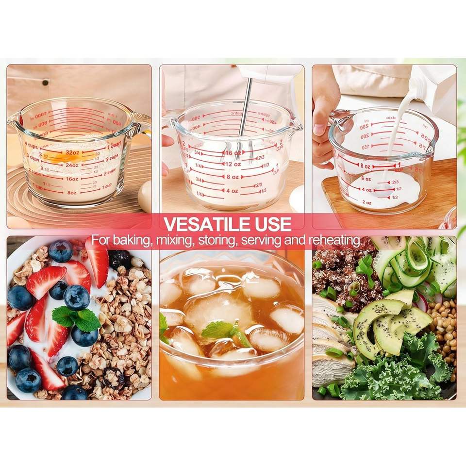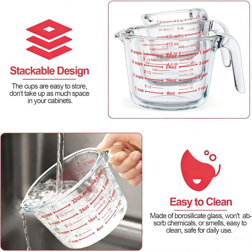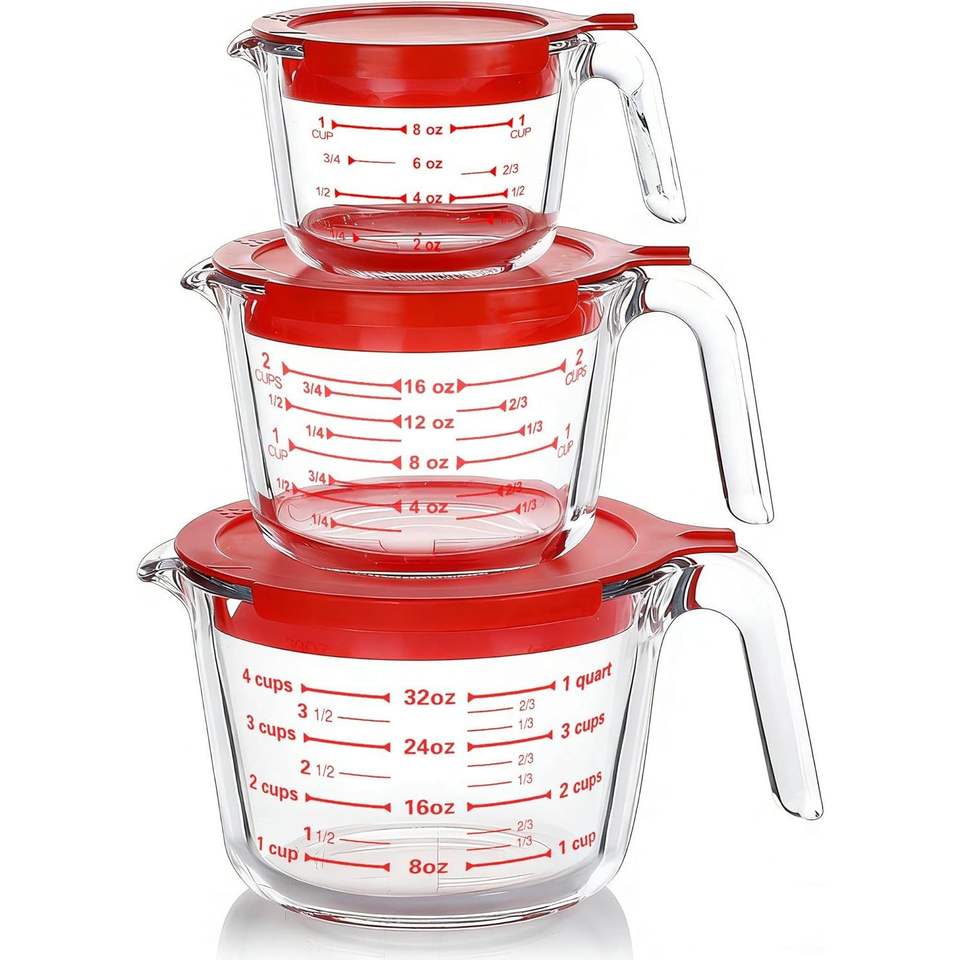 6-Piece Glass Measuring Cups with Lids Set 1-Cup 2-Cup 4-Cup Jugs with Handles Nesting Liquid Measuring Tools Kit