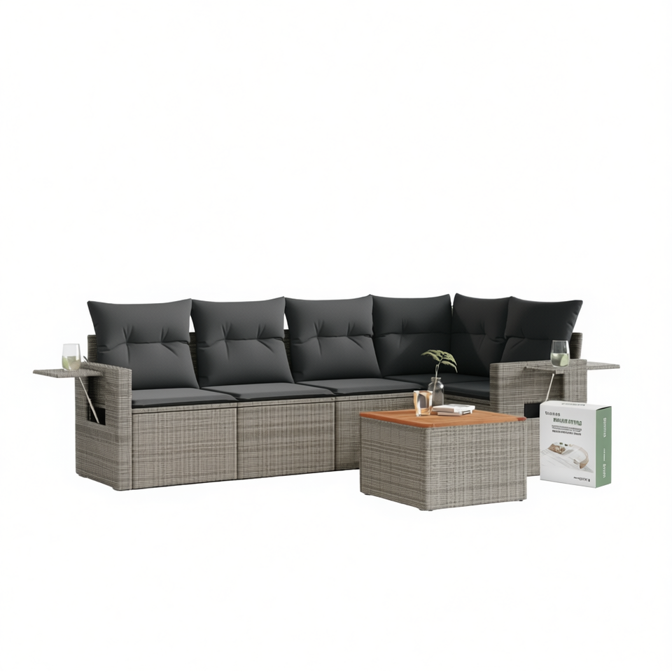 Set Divano da Esterno in Polyrattan Grigio a 6 Posti con Cuscini, Design Contemporaneo per Giardino